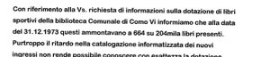 - Donazione alla Biblioteca civica (nel 72) della parte più consistente – 114 volumi – del nuovo reparto di letteratura sportiva.