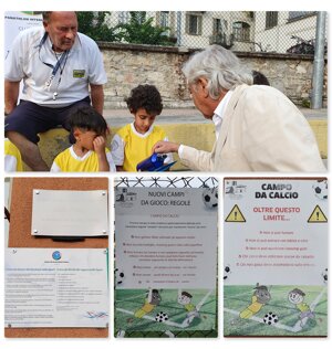 Nella Galleria immagini presentiamo un cartellone che è esposto nel campo da molto tempo e che cattura l'attenzione per i contenuti che si associano alle finalità delle Carte del Panathlon International. Ottima collaborazione che ora prosegue anche con questo service "NO alla PLASTICA".