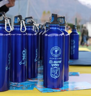 7 giugno – In un pomeriggio baciato dal sole nel campo della Cittadella di Via Frigerio, occupato da decine e decine di piccoli atleti e dei loro istruttori, il Panathlon Como è arrivato per la consegna delle borracce personalizzate che la Mapei, col suo sostegno, permette di realizzare.