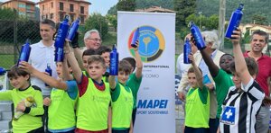 Presentando l’opuscolo che contiene le carte panathletiche, che di lì a poco sarebbe stato loro consegnato, Achille Mojoli ha ricordato l’importanza di far leggere ai genitori la “Carta dei doveri del genitore nello sport” e portato qualche esempio di come il Panathlon premia gesti di Fair Play. Introducendo il concetto di essere rispettosi verso l’ambiente, ha passato la parola al dr. Claudio Pecci. “Mapei per lo sport sostenibile – ha specificato – vuol dire fare in modo che lo sport serva soprattutto per far crescere bene i ragazzi. Così la sostenibilità è altrettanto per il mondo che ci circonda e per il modo di vivere. Uno di questi modi di vivere in modo sereno e corretto è quello di rispettare l’ambiente. Per cui Mapei - che è impegnatissima come azienda per sostenere uno sviluppo che sia a misura d’uomo sia in termini di sicurezza, sia in termini di formazione degli istruttori ma soprattutto in termini di educazione al corretto comportamento dei ragazzi nello sport - ha voluto sostenere il Panathlon in questa iniziativa. Si spera che questo messaggio vi arrivi e diventi vostro il concetto del rispetto per gli avversari, per i vostri compagni e per l’ambiente. Quindi “NO alla PLASTICA!”.
