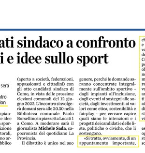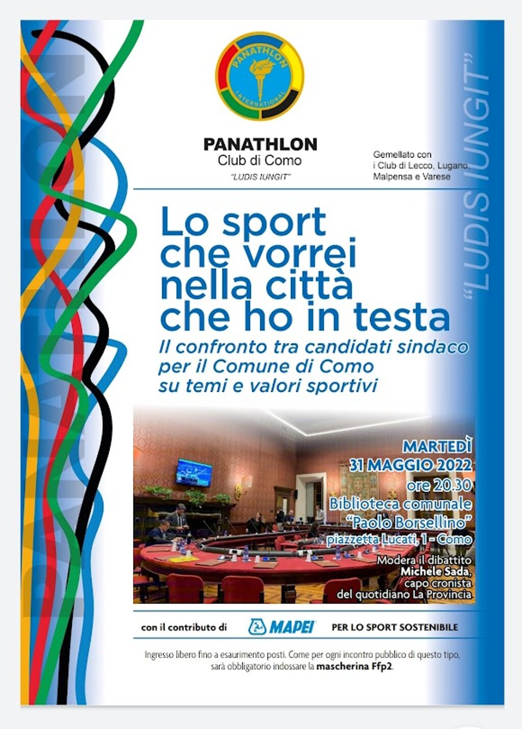 31 maggio 2022 - Confronto pubblico in ambito sportivo organizzato dalla nostra Associazione con i candidati sindaco di Como in vista delle prossime elezioni comunali del 12 giugno 2022.
