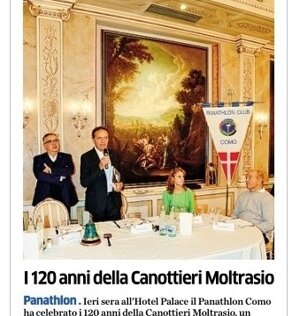Como, 14 ottobre 2022 - Il Panathlon International Club Como nella conviviale di ottobre - svoltasi al Palace Hotel - ha celebrato i 120 anni della Canottieri Moltrasio. Una società di un “piccolo” paese del Lario (1500 abitanti) ma ricca di storia e di successi, anche mondiali. È stato il nostro socio Alessandro Donegana, presidente del club da oltre 30 anni, a ricostruire con emozione la storia della società, fatta di braccia di giovani del posto e delle loro famiglie e di importanti sostenitori, tra cui Guido Monzino, imprenditore e alpinista, e Tullio Monzino. Al tavolo con Donegana c’erano il presidente del Panathlon Como Edoardo Ceriani, il consigliere nazionale della Federazione Italiana Canottaggio Fabrizio Quaglino e i genitori di Filippo Mondelli, il campione di casa scomparso lo scorso anno, oltre al presidente della Canottieri Lario Leonardo Bernasconi. Applausi scroscianti anche per le atlete presenti: le gemelle Giulia e Marta Orefici, Nadine Agyemang-Heard, Arianna Passini ed Elisa Mondelli, sorella di Filippo (grande animatrice del club) e l’allenatore Alberto Tabacco. In chiusura del suo intervento il presidente Donegana ha sollevato un problema che tocca da vicino tutti coloro che si allenano sul lago: “Siamo ovviamente contenti che il nostro territorio sia invaso da stranieri ma con l’aumento delle barche piene di turisti diventa rischioso remare, servirebbe una fascia di lago protetta per chi si allena sul Lario”.