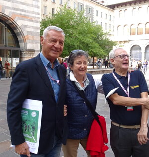 Componenti del “Gemellaggio Insubria” presenti: per il Panathlon Club Como il Presidente Edoardo Ceriani e il panathleta Sergio Sala, per il Panathlon Club Lugano diversi soci tra cui anche il tesoriere del Panathlon International Stefano Giulieri e per il Club Malpensa, nella terza foto alla sinistra della premiata, Enrico Salomi.