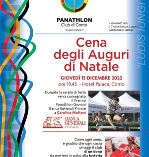 15 dicembre 2022 - In un clima di festosa condivisione di valori e progettualità, nella splendida sala del Palace Hotel, si è svolta la cena degli auguri di Natale del Panathlon Club Como.