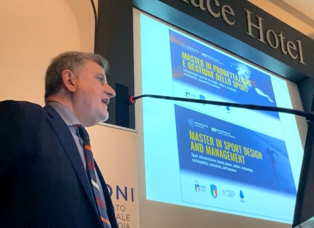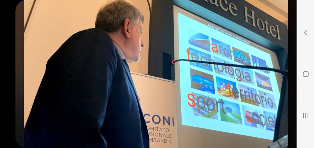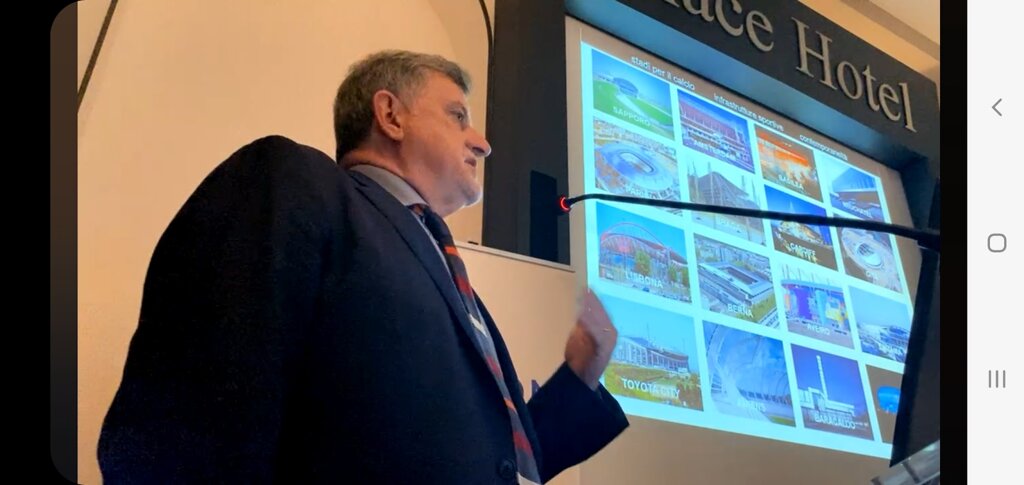 Emilio Faroldi, prorettore al Politecnico di Milano, professore ordinario di tecnologia dell’architettura ed esperto di impianti sportivi nel nostro paese, ha svolto una relazione accompagnata da numerose slides sul concetto di infrastruttura sportiva e sua funzione urbanistica e sociale.