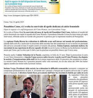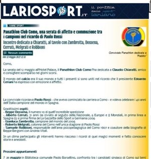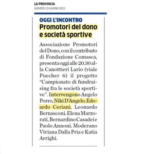 La Provincia di Como del 27 giugno 2022 rilancia il Premio Nazionale di Giornalismo Sportivo per l’Etica nello Sport “Antonio Spallino” - Articolo presentato nella sezione dedicata cliccando qui