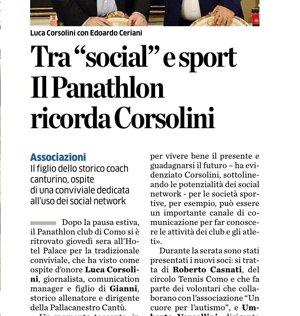Con la conviviale per dibattere il tema di vittoria/sconfitta è ripresa l’attività del Panathlon Club Como dopo la pausa estiva. Pausa che tuttavia ha visto molti panathleti - presidente in testa – svolgere attività sul territorio accanto a società sportive e ad organizzare il terzo quadrimestre di appuntamenti del club. Il presidente Edoardo Ceriani e il suo consiglio direttivo hanno voluto impostarlo con accentuato carattere culturale.