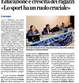 Lo sport è vettore di qualcosa d’importante. Favorisce la formazione, l’identità di sé, l’autostima, l’incontro e fa nascere il fuoco della passione, che manca alla generazione Z un po’ triste e letargica. Passione che è necessaria anche nella vita e deve alimentare i giovani. (MM) - Como, 12 aprile 2024