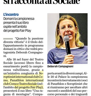 29 settembre - A Conversescion con Claudia Fasola e Viviana Dalla Pria il nostro presidente Edoardo Ceriani, e Niki D’Angelo, come Delegato Coni Como, per presentare l’evento speciale di martedì 30 settembre, al Teatro Sociale di Como, che darà spazio allo sport e alle grandi emozioni: campioni e atleti di ieri e di oggi che si racconteranno sul palco.