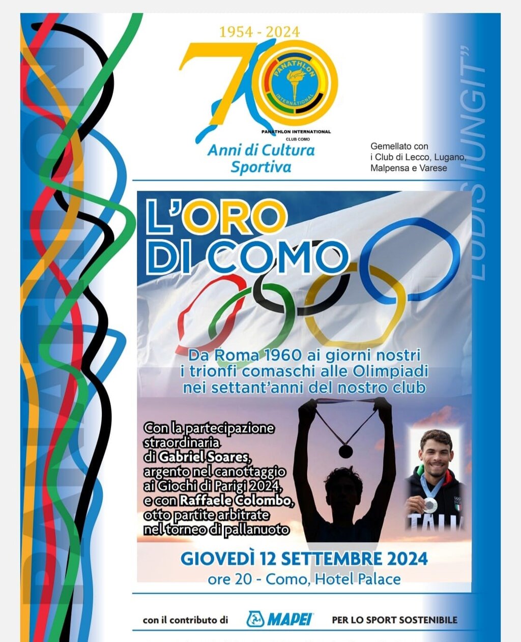 Devo ringraziare all'infinito il presidente Giorgio Costa per la fiducia accordatami (vale più di una medaglia) e per aver accettato anche le proposte mie, di Ignazio Landi e del gruppo per il Premio Panathlon, assegnato a Gianfelice Facchetti e al suo Capitani, che fin d'ora mi impegno di portare al "mio" club di Como”.