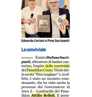 In platea - nei vari ruoli di consiglieri del Panathlon, sponsor e amici di Pallacanestro Cantù - gli altri soci Davide Calabrò, Umberto Vercellini, Lorenzo Longhi, Boris Pulcinelli, Fabrizio Puglia, Paolo Frigerio ed Enrico Dell'Acqua.